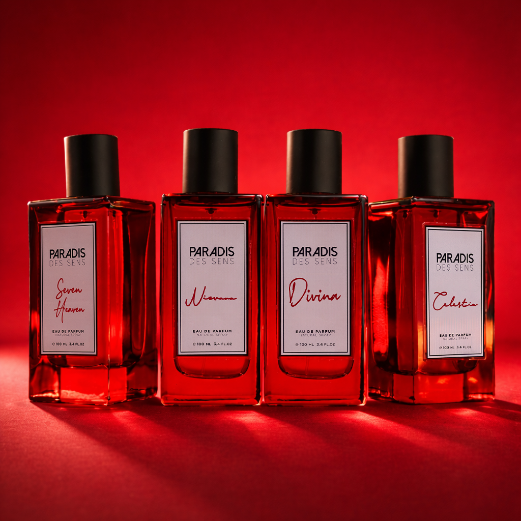 Paradis Des Sens creates fragrance as sensory states you can wear. Each perfume is defined by how it feels on skin and in the air: clean rush, soft heat, afterglow, velvet smoke.